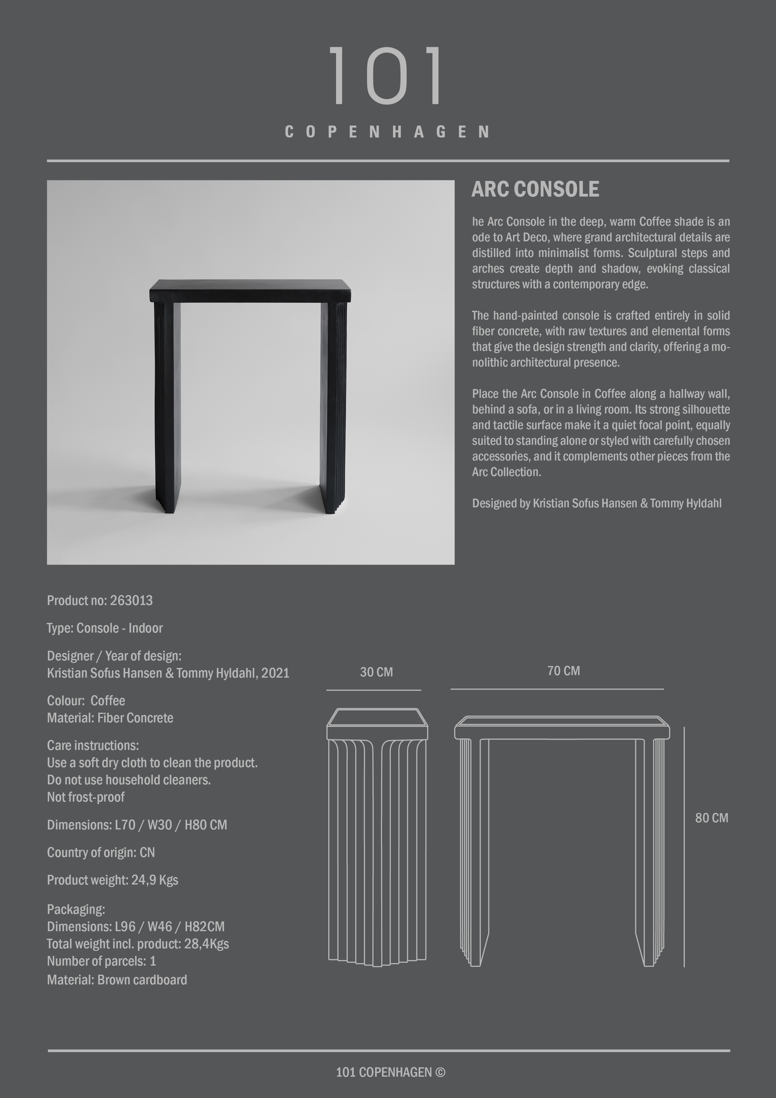 Die Arc-Kollektion ist eine moderne Interpretation des Art déco, in der architektonische Details zu klaren, skulpturalen Formen destilliert werden. Stufen, Bögen und Ebenen erzeugen Tiefe und Schatten und verleihen der Kollektion einen unverwechselbaren und zugleich harmonischen Ausdruck. Die Serie erforscht Materialkontraste: Massivholz, handbemalter Faserbeton, massiver Faserbeton und Silber vereinen sich zu einer gemeinsamen Formensprache. Das Ergebnis sind Möbel mit einer besonderen Präsenz und Klarheit, deren rohe Oberflächen und geometrische Formen einen zeitlosen, architektonischen Ausdruck schaffen und klassische Inspiration in moderne Interieurs übertragen.