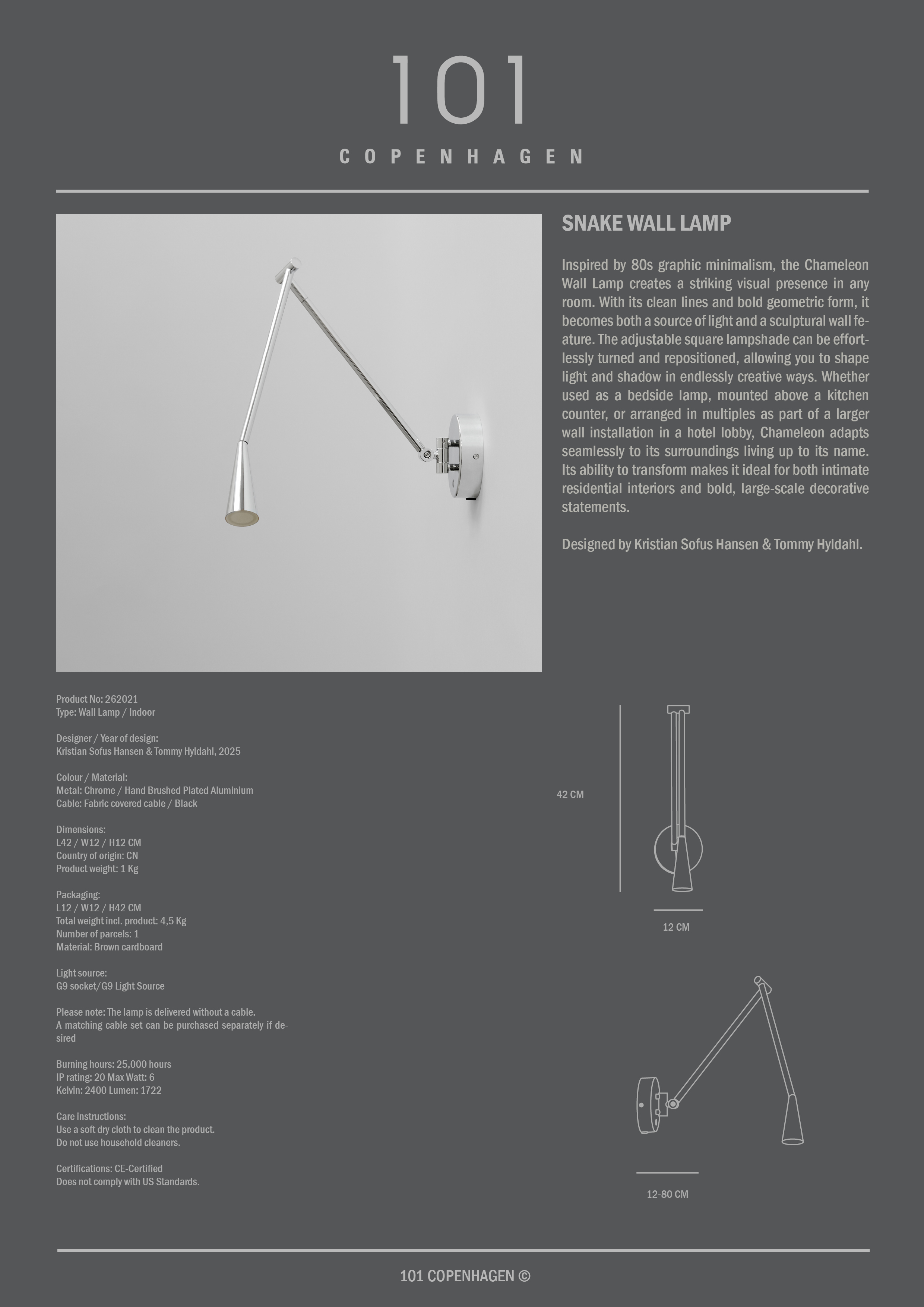 101 Copenhagen Schlangen Wandlampe Chrom