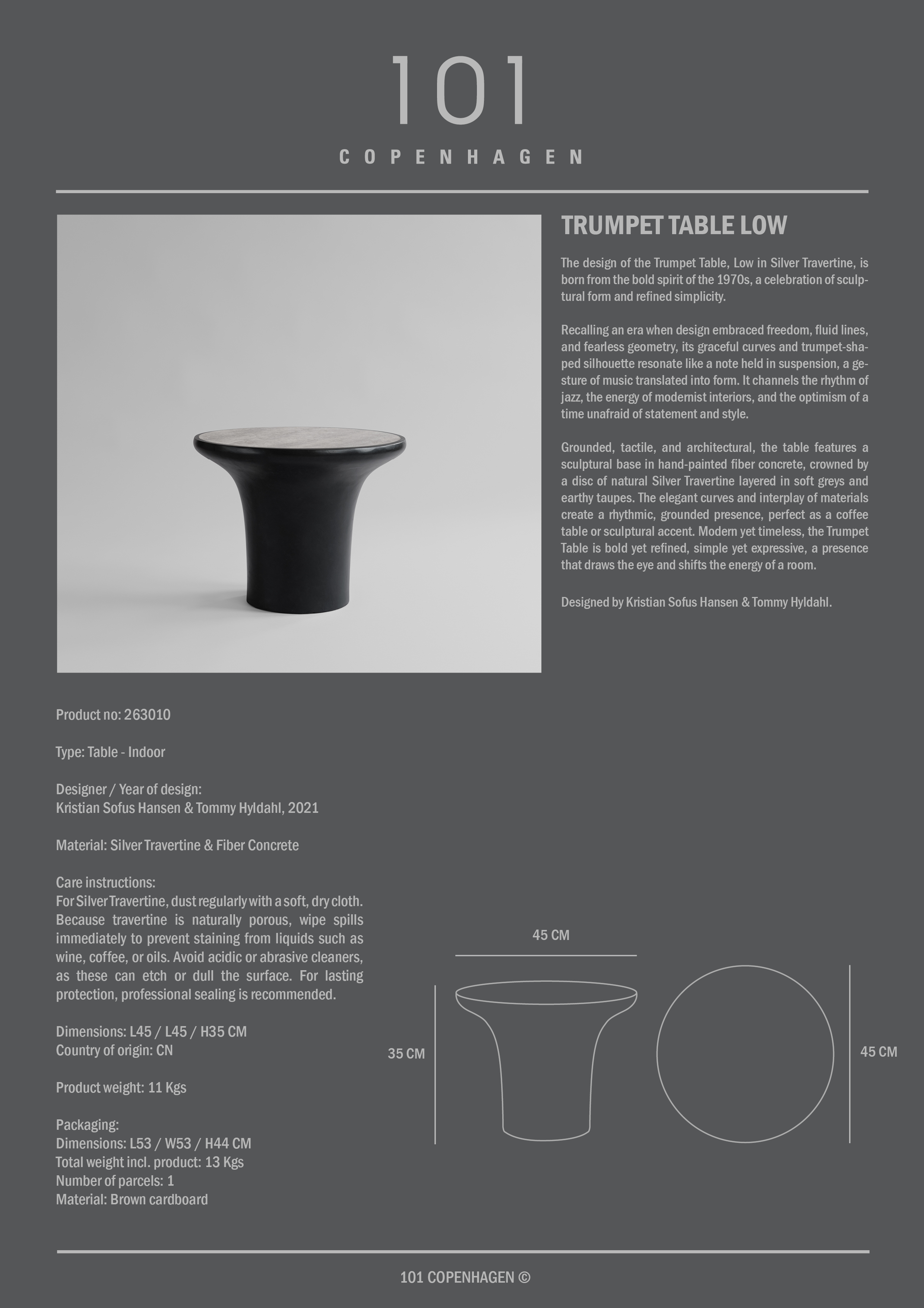 Inspiriert von der kühnen Formensprache der 1970er-Jahre, vereint Trumpet skulpturale Kraft mit raffinierter Schlichtheit. Die charakteristische Trompetenform erzeugt eine elegante Silhouette, in der sanfte Kurven und klare Linien Ausdruck zusammenwirken. Die Kollektion ist in verschiedenen Materialvarianten erhältlich, die dem Design jeweils ihren eigenen Charakter verleihen – von leichten, lichtreflektierenden Oberflächen bis hin zu roheren, architektonischen Ausdruck. Allen gemeinsam ist ihre unverwechselbare Präsenz, die als visueller Anker im Raum wirkt und ihm Wärme und Persönlichkeit verleiht.