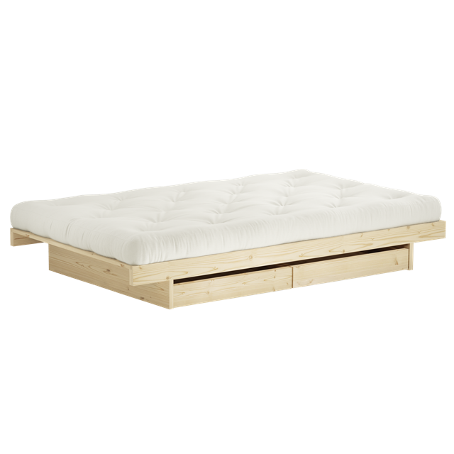 Die Version mit zwei integrierten Schubladen bietet Ihnen zudem eine clevere Aufbewahrungslösung, in der Bettwäsche, Kleidung oder andere Kleinigkeiten mühelos verstaut werden können. Die Schubladen sind dezent in den Rahmen eingelassen, sodass sich Funktionalität und schlichtes Design harmonisch ergänzen. Ob Sie sich für Kanso mit oder ohne Schubladen entscheiden – es verleiht jedem Schlafzimmer eine moderne und stilvolle Merkmal .