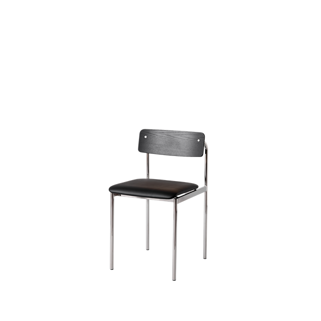 Moebe Offset Esszimmerstuhl, gepolstert, Chrom/ Schwarz