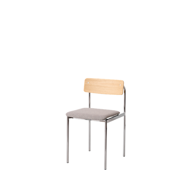 Moebe Offset Esszimmerstuhl, gepolstert, Chrom/geölte Eiche/Re-Wool 128