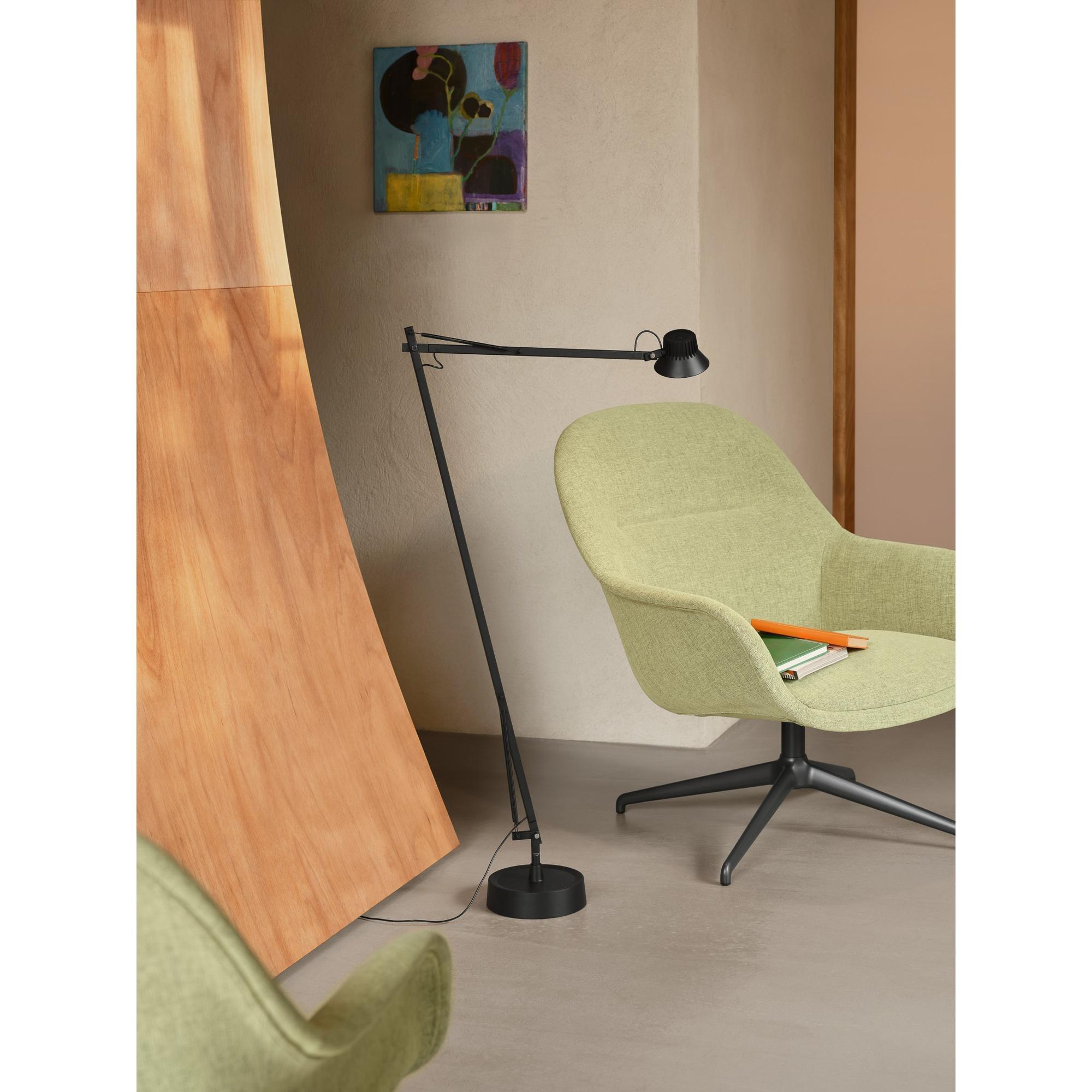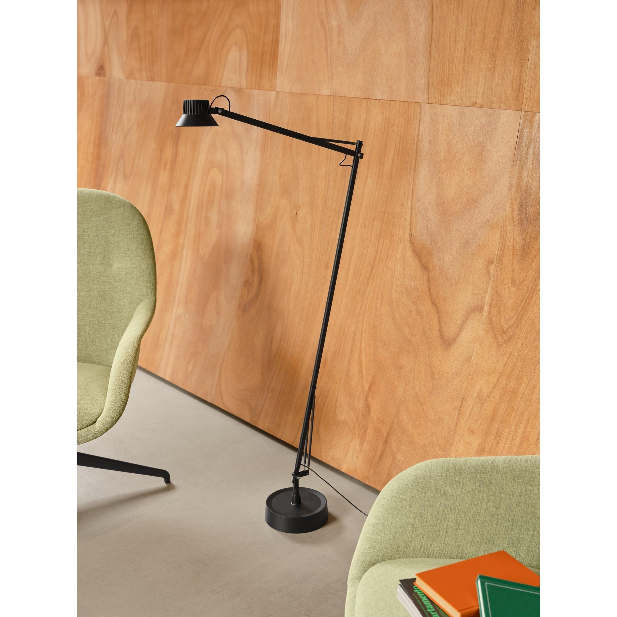 Lampenkopf mit Scharnieren, Sockel aus aluminium-Druckguss, Arme aus stranggepresstem aluminium, pulverbeschichtete Oberfläche, Diffusor aus spritzgegossenem Kunststoff, ohne Zusatz von PFAS, austauschbare LED, stufenlose Dimmung, 750 Lumen, Lebensdauer 3