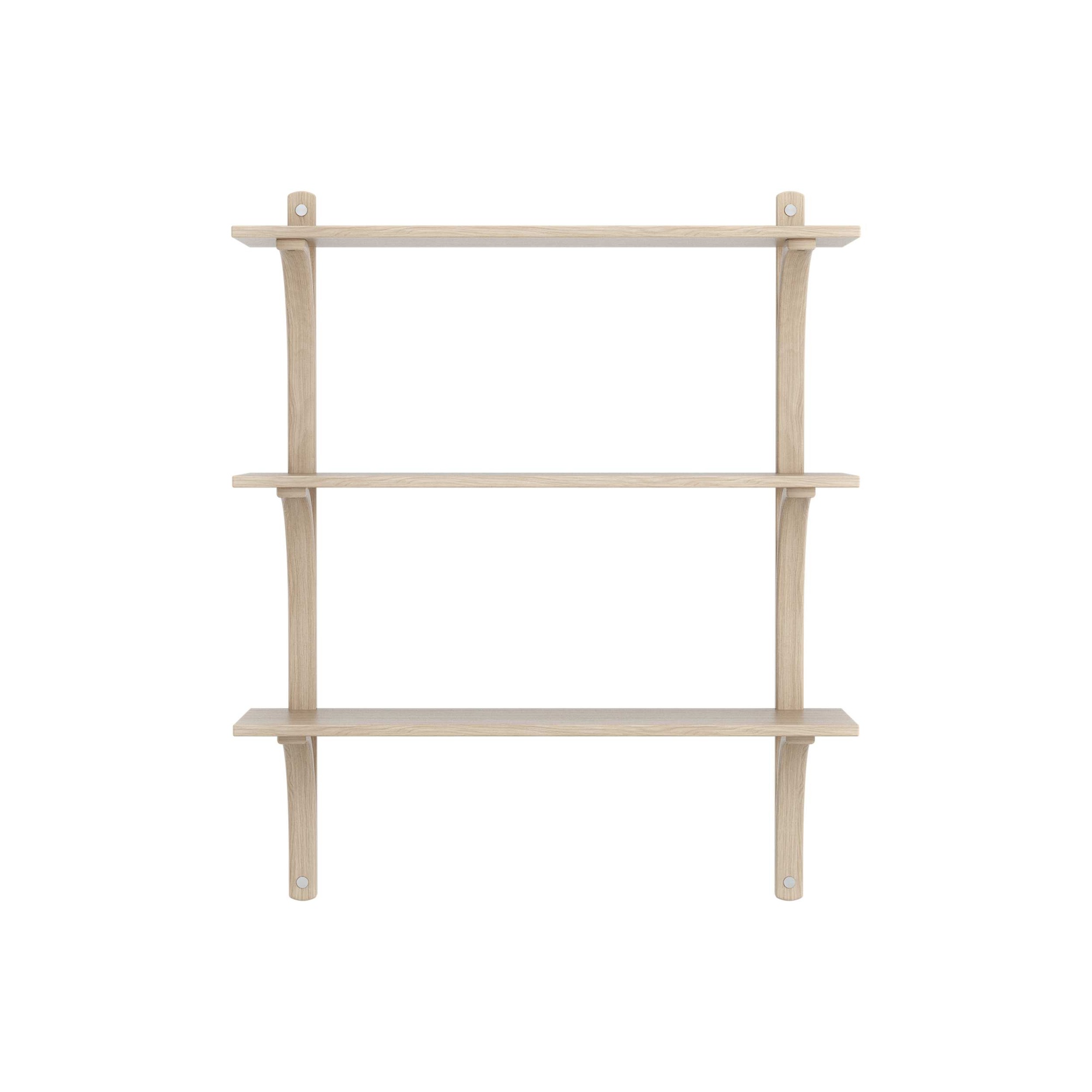 Schwedisches Levi-Regal 90 cm 3 Ablagen Aluminium/ Weiß Pigmentierte Lackierte Eiche