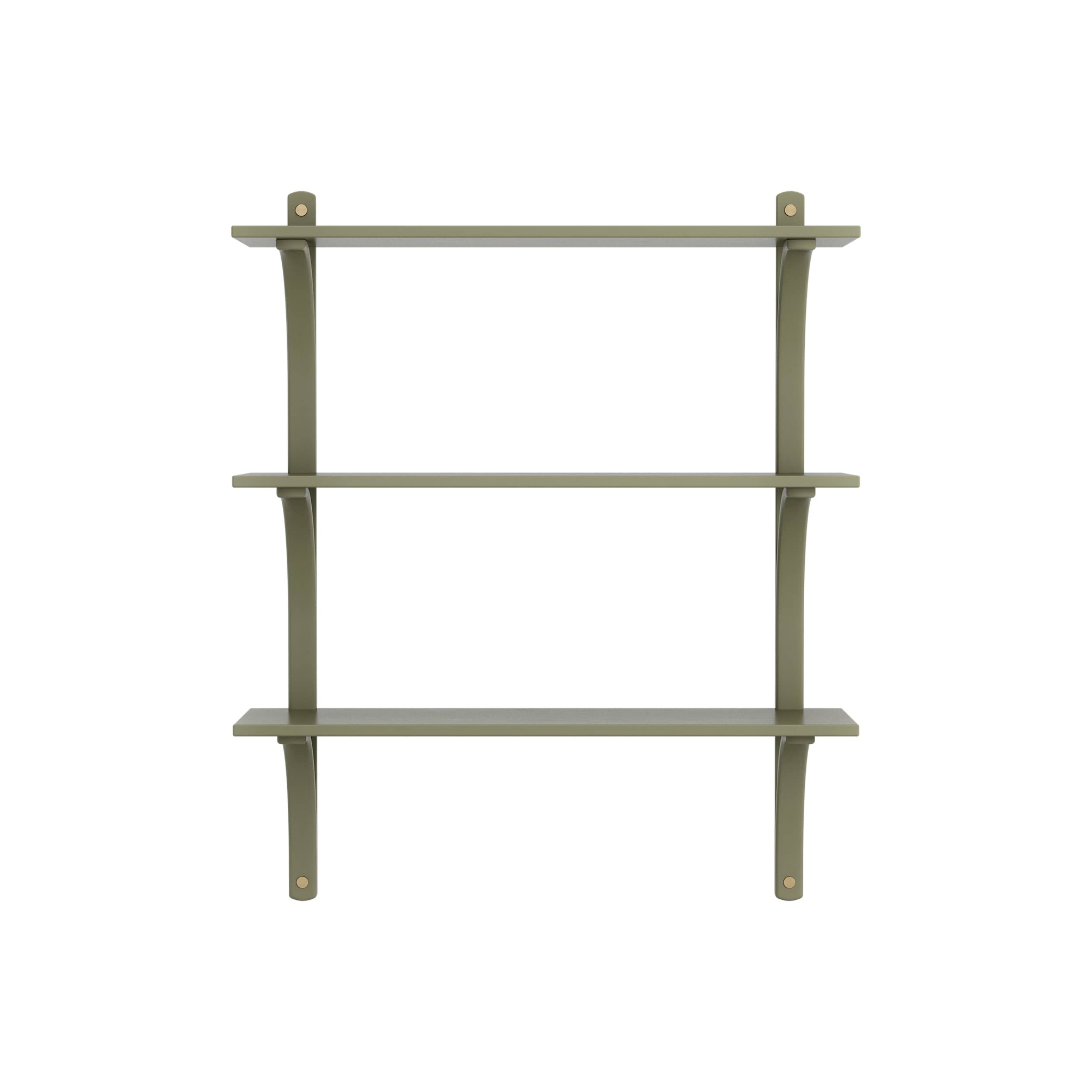 Schwedisches Levi-Regal 90 cm 3 Ablagen Aluminium/ Moosgrün/Esche