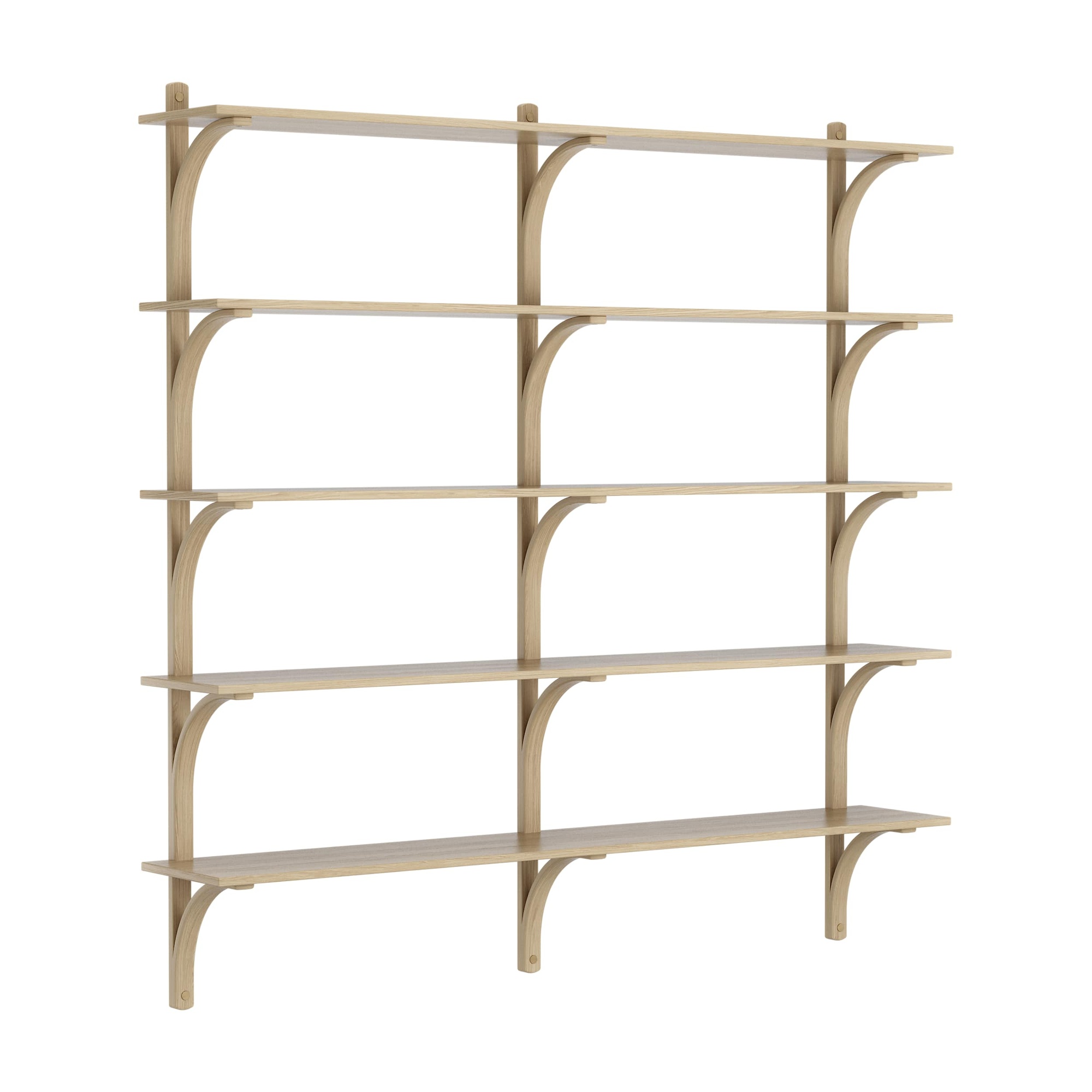 Schwedisches Levi-Regal 180 cm 5 Ablagen Messing/ Eiche Natur Lackiert