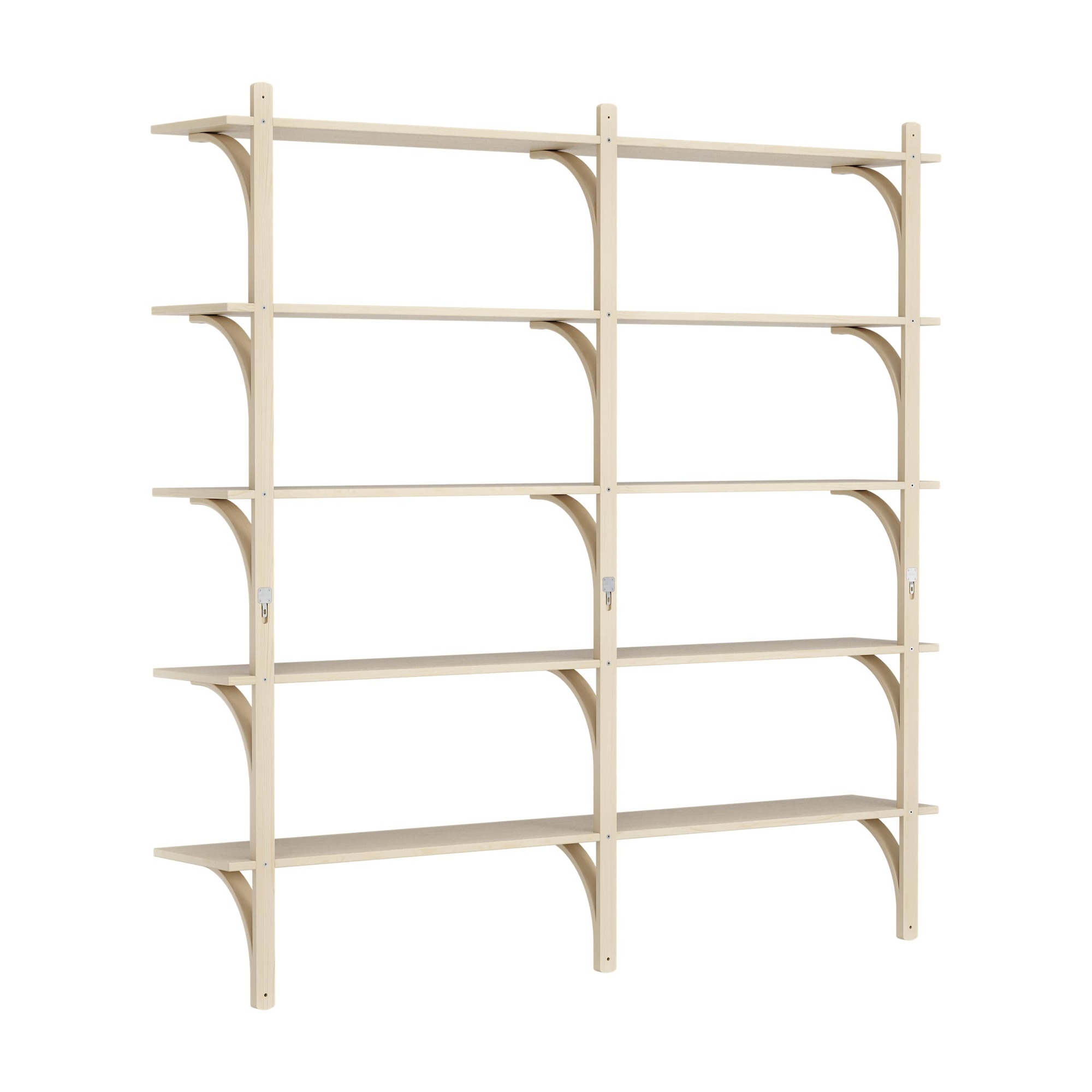 Schwedisches Levi-Regal 180 cm 5 Ablagen Messing/ Naturlack Esche