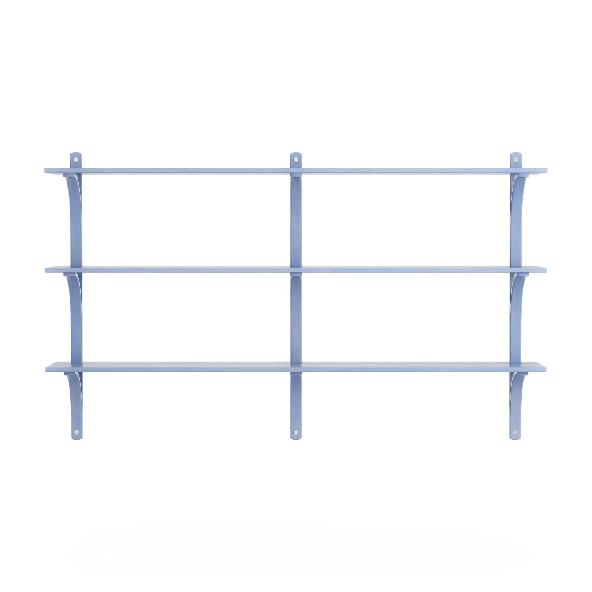 Schwedisches Levi-Regal 180 cm 3 Ablagen Aluminium/ Blau/ Esche