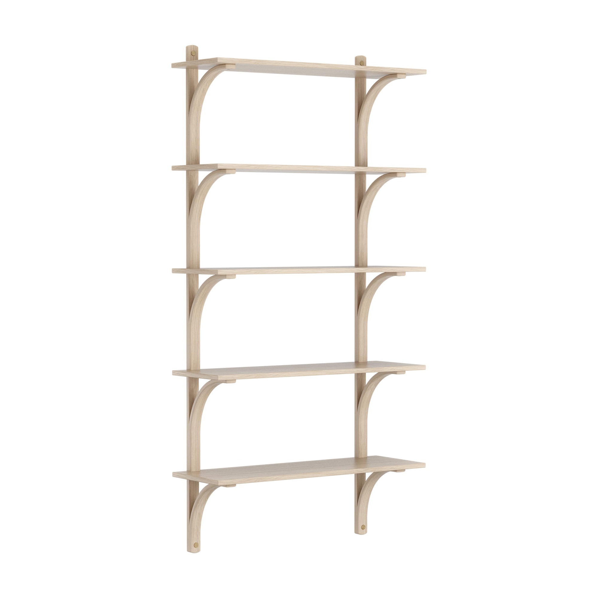 Schwedisches Levi-Regal, 90 Cm, 5 Ablagen , Messing/ Weiß Pigmentierte Lackierte Eiche