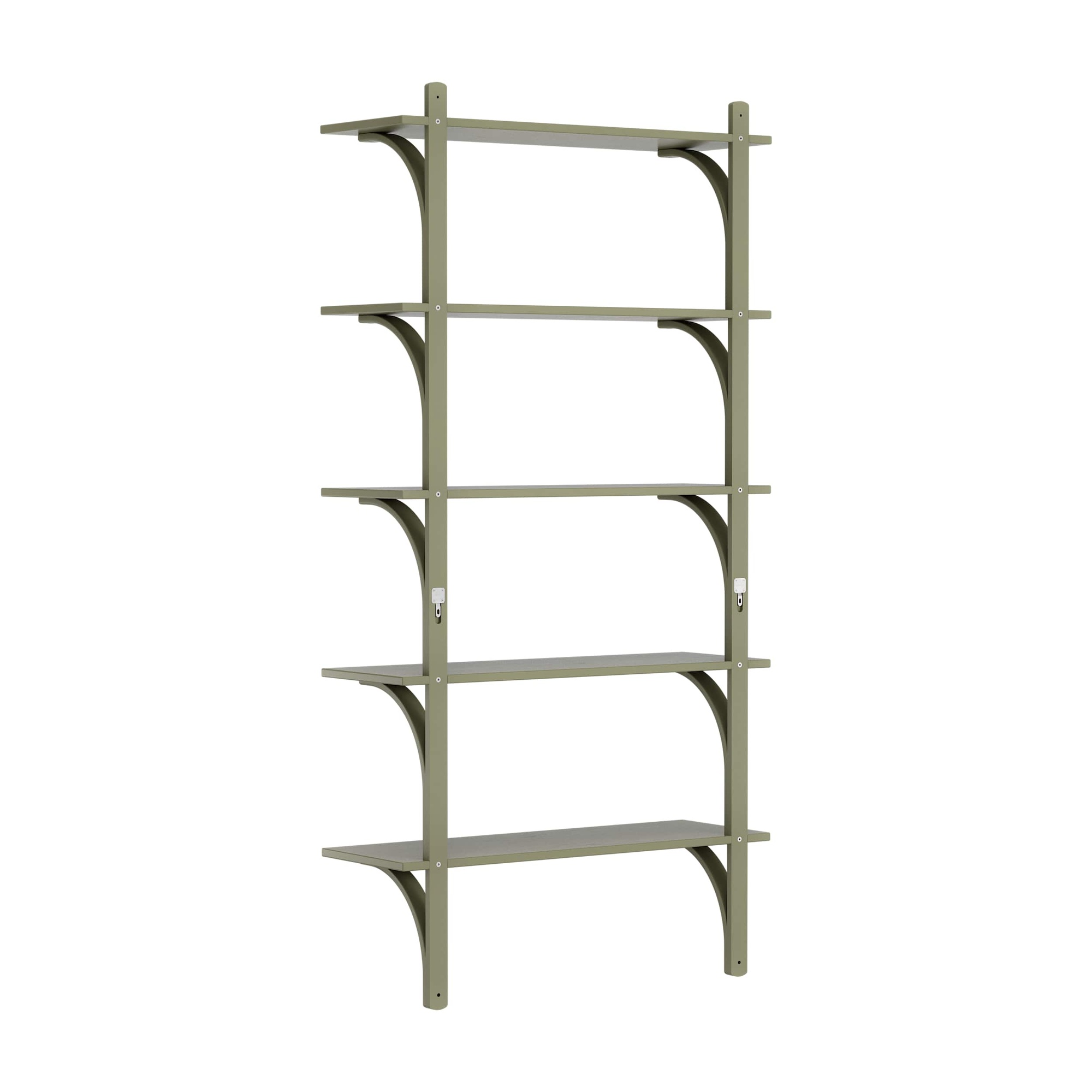 Schwedisches Levi-Regal 90 cm 5 Ablagen Aluminium/ Moosgrün/Esche
