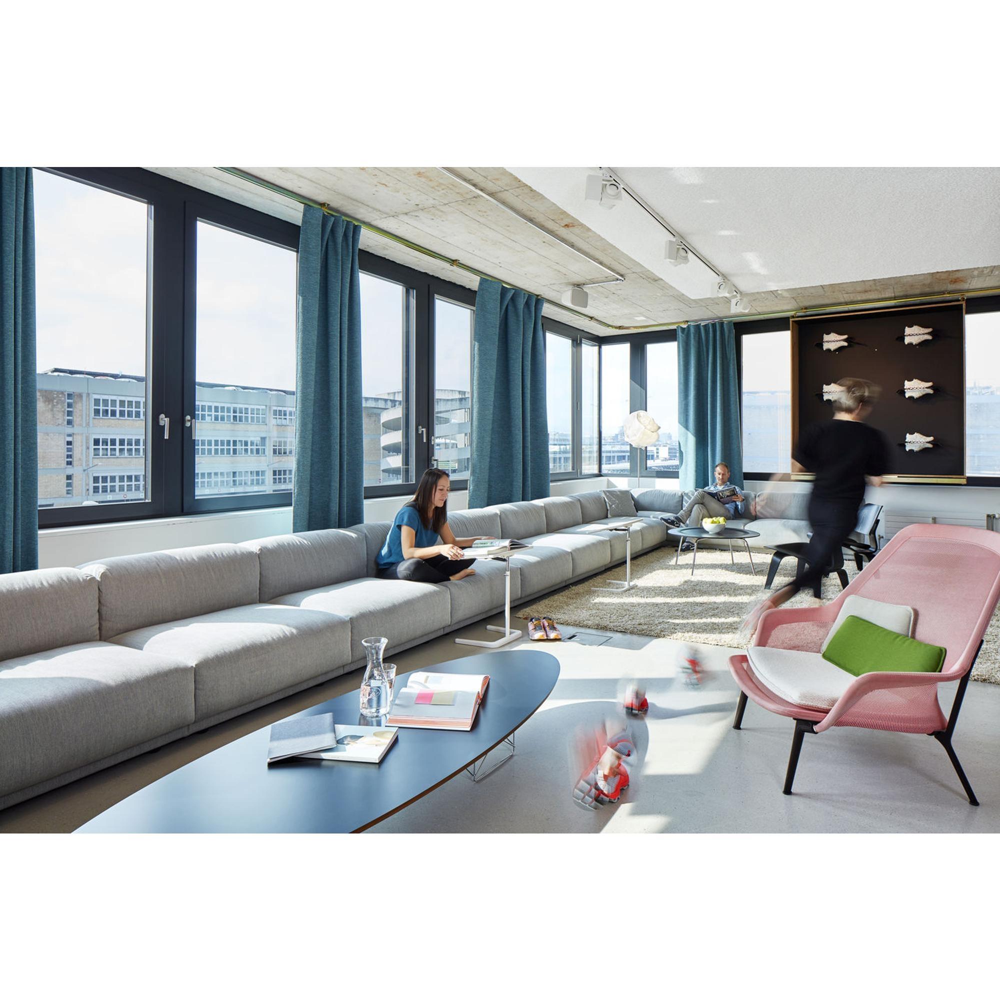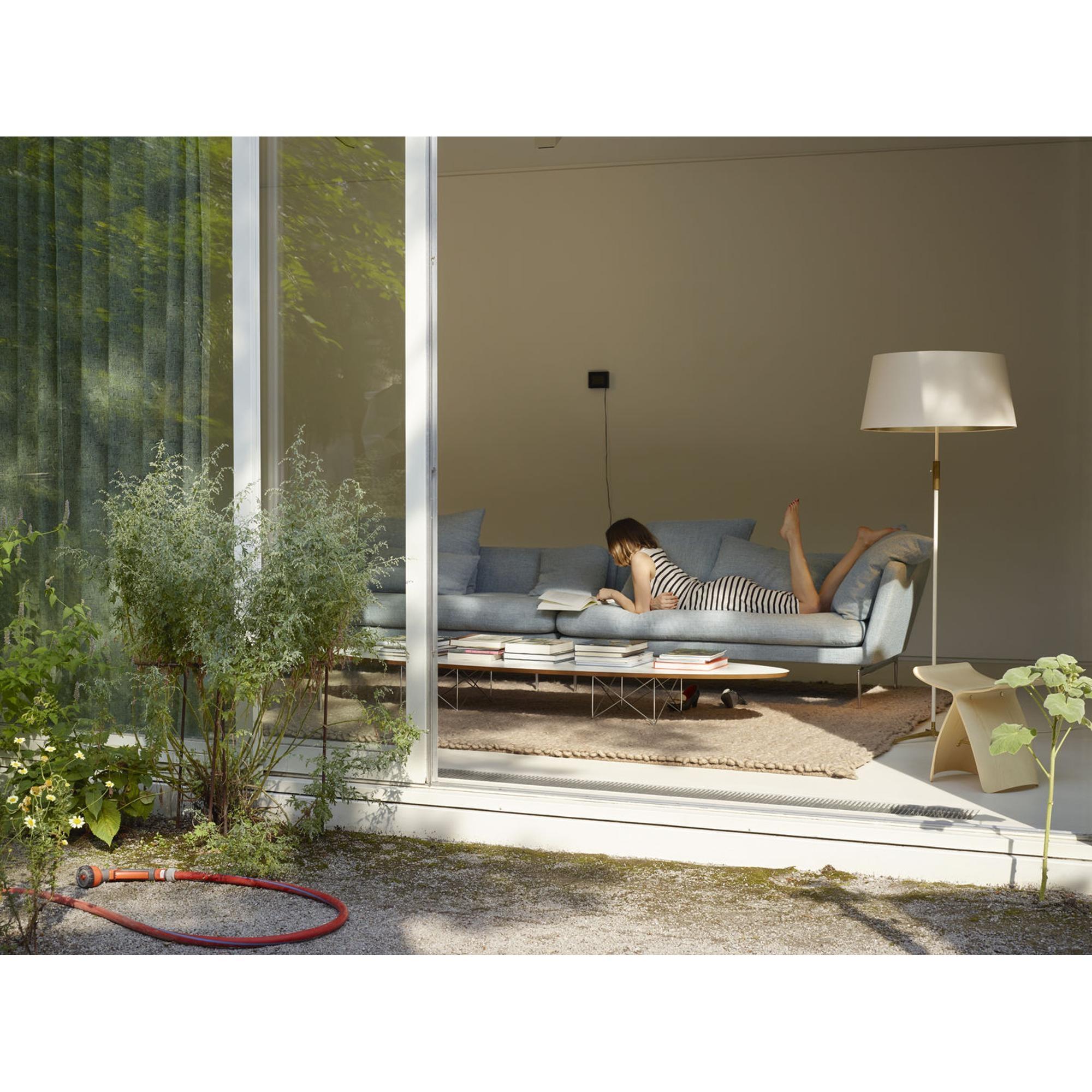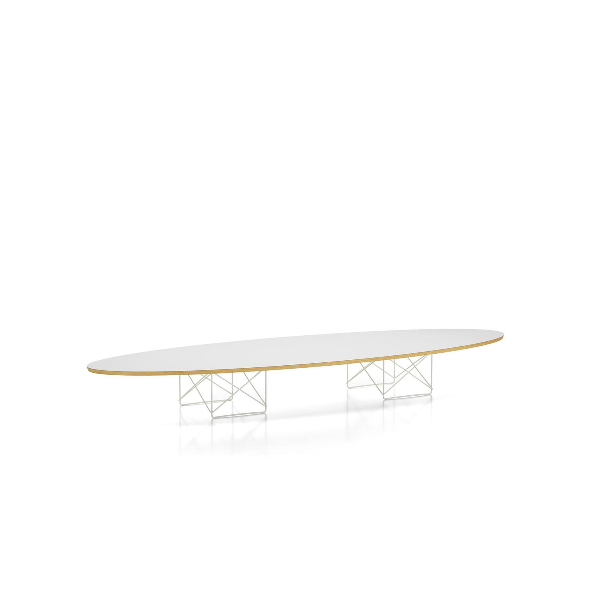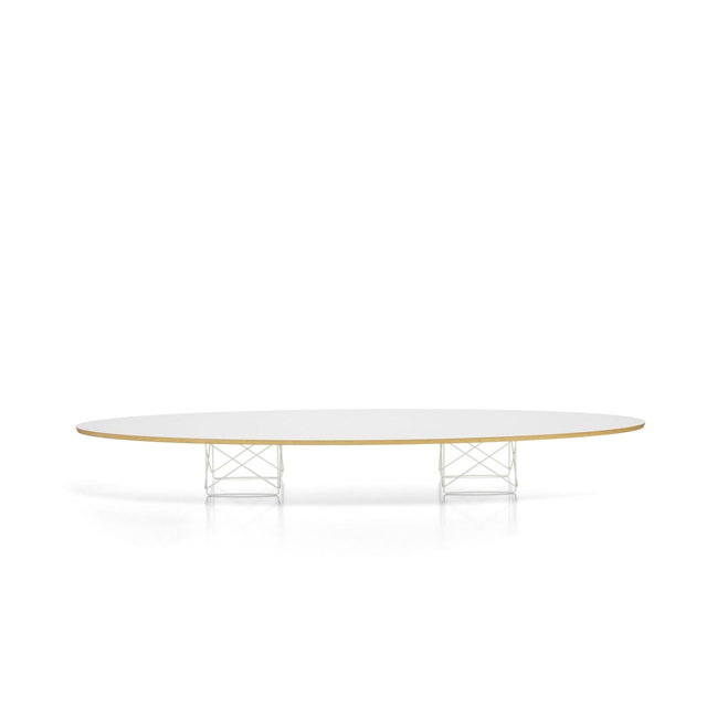 Der Elliptical ETR Couchtisch, entworfen von Charles und Ray Eames, vereint skulpturale Leichtigkeit mit grafischer Präzision. Die niedrige, elliptische Tischplatte – oft als "Surfbrett" bezeichnet – ruht elegant auf einem Lampensockel aus schlanken, kreuzförmigen Stahlträgern und verleiht dem Tisch eine luftige, fast schwebende Ausdruck. Mit seiner ikonischen Form und architektonischen Präsenz dient der ETR sowohl als funktionaler Couchtisch als auch als markantes Designobjekt in modernen Interieurs. Ein klassisches Statement-Stück mit Leichtigkeit, Struktur und Charakter.